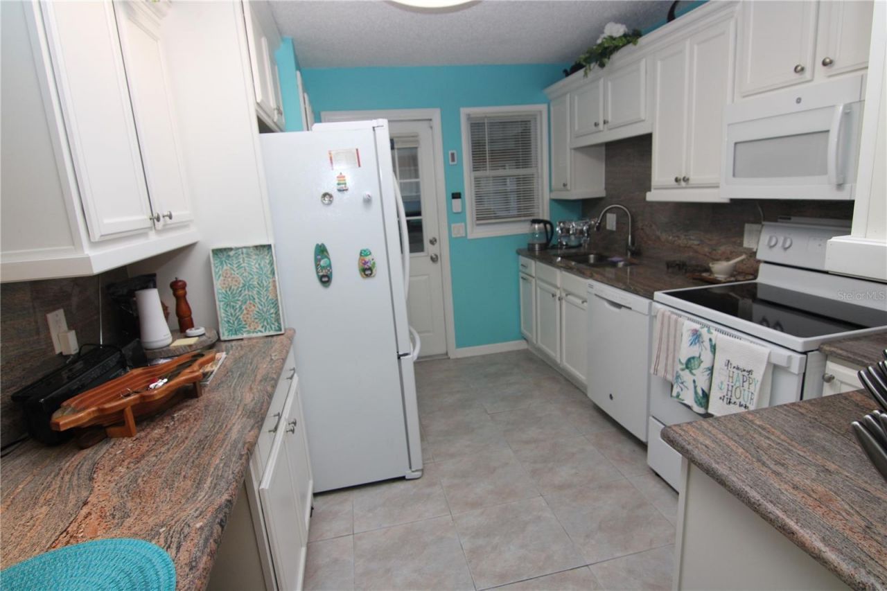Don't pass up this beautiful furnished condominium home in Sun City Center with expansive views of water and the retired Sandpiper golf course! This spotless home is ready for immediate occupancy. Pull-out drawers, granite countertops, under-cabinet lighting, a French door refrigerator with a bottom freezer, a built-in microwave, a new glass top stove (2023), a dishwasher, and a handy breakfast bar peninsula are all elements of the updated kitchen. An updated shower, vanity, fixtures, and linen pantry are features of the primary bedroom's en suite bathroom. A stylish upgrade has also been made to the guest bathroom. Two bedrooms, a living room, dining room, family room, and a Florida Room with stunning views is included in this floor plan. The utility area has additional storage and air conditioning and is enclosed independently.