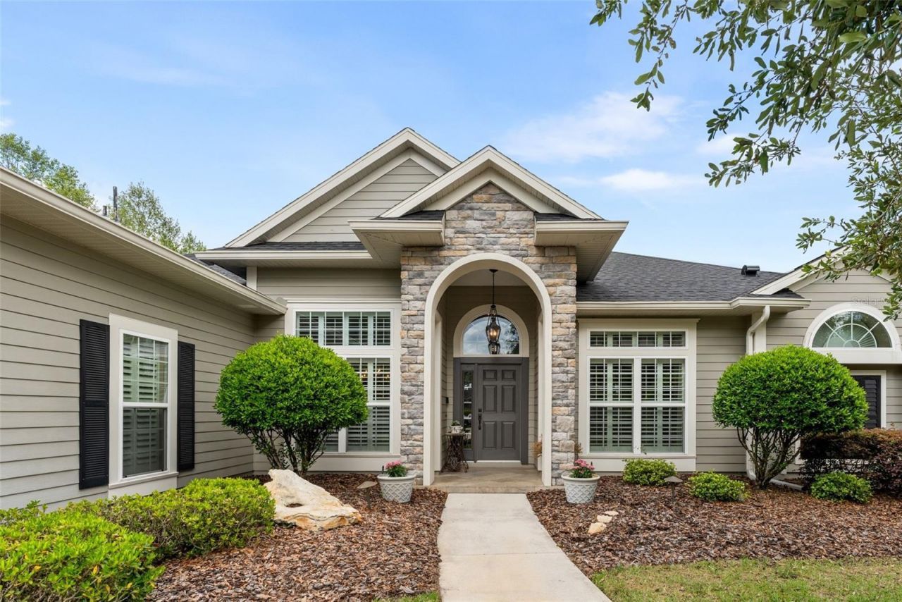 Meticulously maintained pool home located in the highly desirable community of Turnberry Lake. Situated on a half acre corner lot, this three- way split floor plan offers 4 bedrooms, 3.5 bathrooms PLUS office/study and almost 2,700 square feet of conditioned living space. Inside, soaring 12' entry and 10' ceilings throughout, rich wood flooring, and extensive trim details including crown molding, plantation shutters, chair rail, picture molding, and coffered ceilings, create a refined yet inviting atmosphere. The formal living room flows directly into the formal dining room, creating an open, connected space that works well for entertaining. At the heart of the home is a well-appointed kitchen showcasing custom wood cabinetry, granite countertops, stainless steel appliances, five-burner gas cooktop, double ovens, and a large center island with separate wine cooler. Just off the kitchen, a breakfast nook with built-in bench seating offers a comfortable spot for everyday meals, while the adjoining family room feels warm and welcoming with its custom built-ins, stacked stone gas fireplace and coffered ceiling. The spacious primary suite features a tray ceiling, dual walk-in closets with custom closet systems, and French doors leading to the screened lanai. The en suite bath includes dual vanities, jetted tub, walk-in shower, and private water closet. Just off the primary suite, you'll find a dedicated office/study, along with a conveniently located half bath that also provides direct access to the pool area. Two additional guest bedrooms on the opposite side of the home are equally spacious and share a full bath with dual vanity. Set down its own hallway, the fourth bedroom and full bath offer a private setup that works well for visiting guests. Step outside to enjoy Florida living year-round on the screened lanai, complete with a heated pool and spa, as well as a built-in vent hood for a gas grill-perfect for outdoor gatherings. Recent updates include roof (2026), spa heater (2026), whole-house generator (2025), tankless gas water heater (2025), variable speed pool pump (2024) and recent interior as well as exterior painting. Additional highlights include a 3-car side entry garage, dedicated laundry room with utility sink, insulated low-E windows, and high-speed fiber internet through IQ. Energy efficiency is enhanced with natural gas, Clay Electric service and a dedicated well for irrigation. Turnberry Lake residents enjoy a community pool and playground, miles of sidewalks, and a private 10-acre lake for catch-and-release fishing. Ideally located just steps from Jonesville Rotary Park-featuring baseball and soccer fields, as well as clay tennis courts, only minutes from Tioga Town Center and easy access to the University of Florida, as well as UF Health and HCA hospitals by way of I-75.
