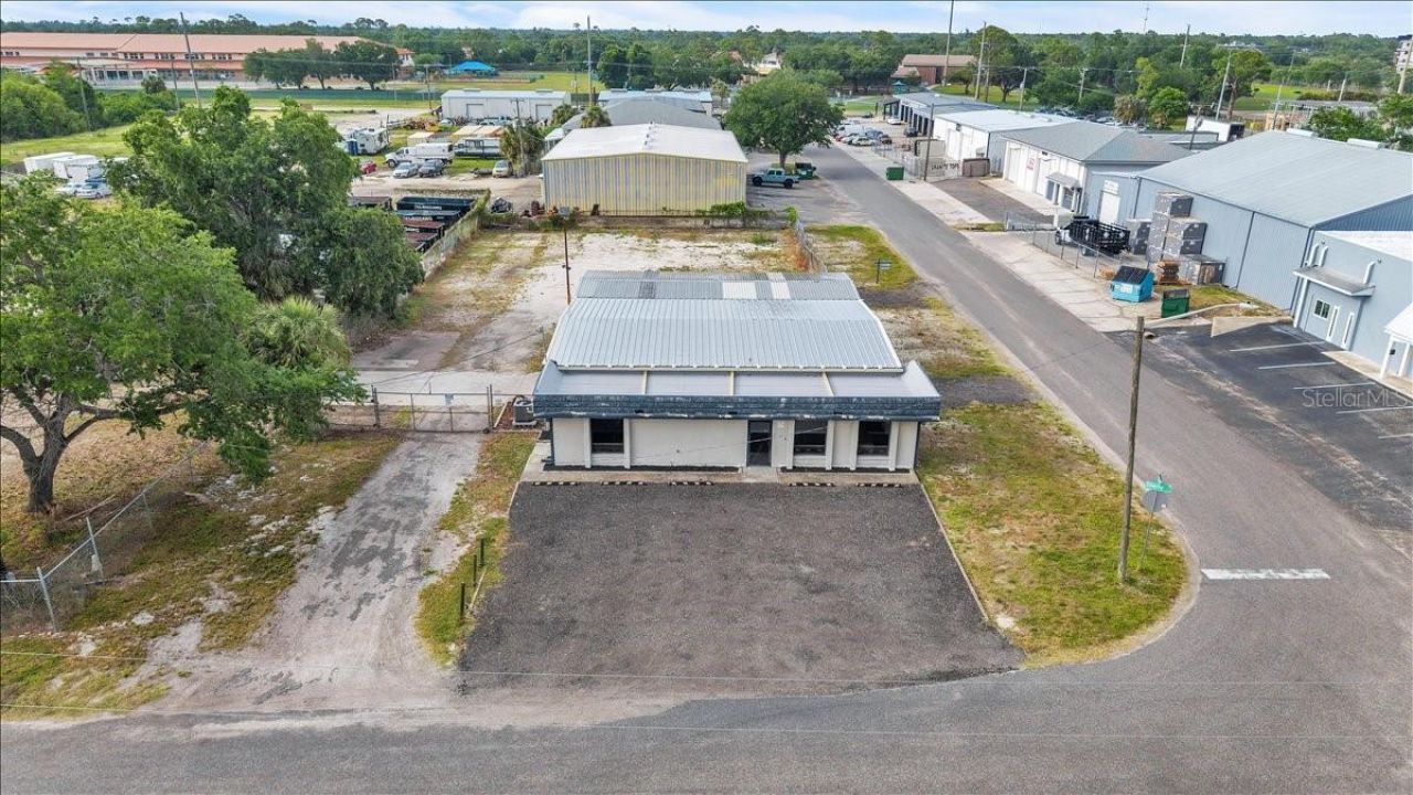 Corner Commercial Property with Office and Rear Metal Buildings in Harbor Executive Park! This 3,500+ square foot commercial property is ideally situated on a prominent corner lot within Harbor Executive Park, offering excellent visibility and dual street frontage. The property is currently vacant, allowing for immediate owner-user occupancy or lease-up. The site features a front office building positioned along the street, providing a professional presence for administrative or customer-facing functions, along with metal buildings located to the rear of the property that support warehouse, storage, or operational use. This layout offers a practical separation between office and industrial components, enhancing functionality for a wide variety of business operations. Zoned Industrial General, the property allows for numerous permitted uses including warehouse, storage facility, distribution center, trucking terminal, or other compatible industrial and service-oriented uses (subject to applicable approvals). The aerial perspective highlights a clearly defined corner parcel with roadway access from two sides and a generous open yard area, suitable for parking, outdoor storage, vehicle circulation, or future expansion. The property is served by public water and sewer, supporting a broad range of commercial uses. Surrounding properties reflect an established industrial and commercial environment.